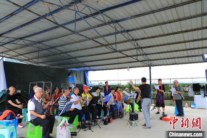 8月10日,在貴州省遵義市桐梓縣九壩鎮(zhèn)避暑的旅居游客們,練習(xí)唱歌和器樂演奏。李甜甜攝