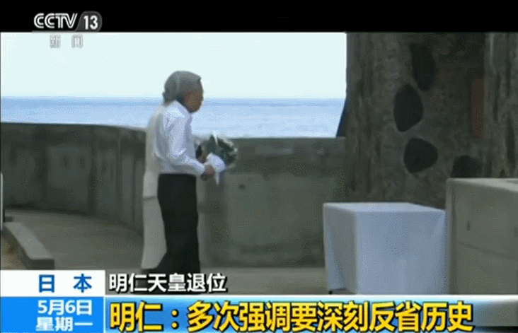 明仁天皇和皇后在全國(guó)戰(zhàn)歿者追悼?jī)x式上。來(lái)源:央視網(wǎng)