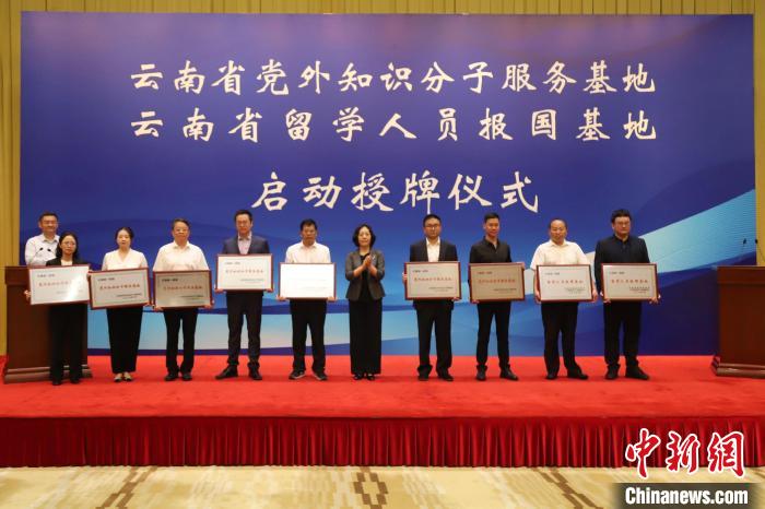 中新網昆明8月14日電 (記者 胡遠航)14日,云南省黨外知識分子、無黨派人士和歸國留學人員服務全省高質量跨越式發(fā)展行動在昆明啟動,并集中授牌一批黨外知識分子服務基地和留學人員報國基地。