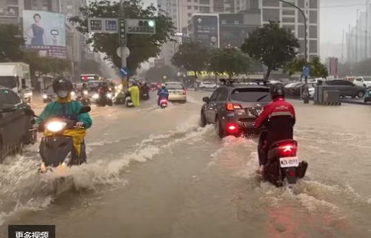 據(jù)報道,在高雄鳥松區(qū)、鳳山區(qū)、三民區(qū)等地都出現(xiàn)淹水情況,有路段積水甚至一度達43厘米,馬路汪洋一片,水淹及膝、超過半個輪胎高,許多騎車、開車的上班族都被困在路中央。島內(nèi)網(wǎng)友們被這場大雷雨嚇壞,紛紛留言“好可怕”“根本像劃船”。