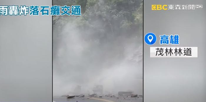 圖為臺灣高雄市遭落石的山路。 圖片來源:臺灣東森新聞網(wǎng)視頻截圖