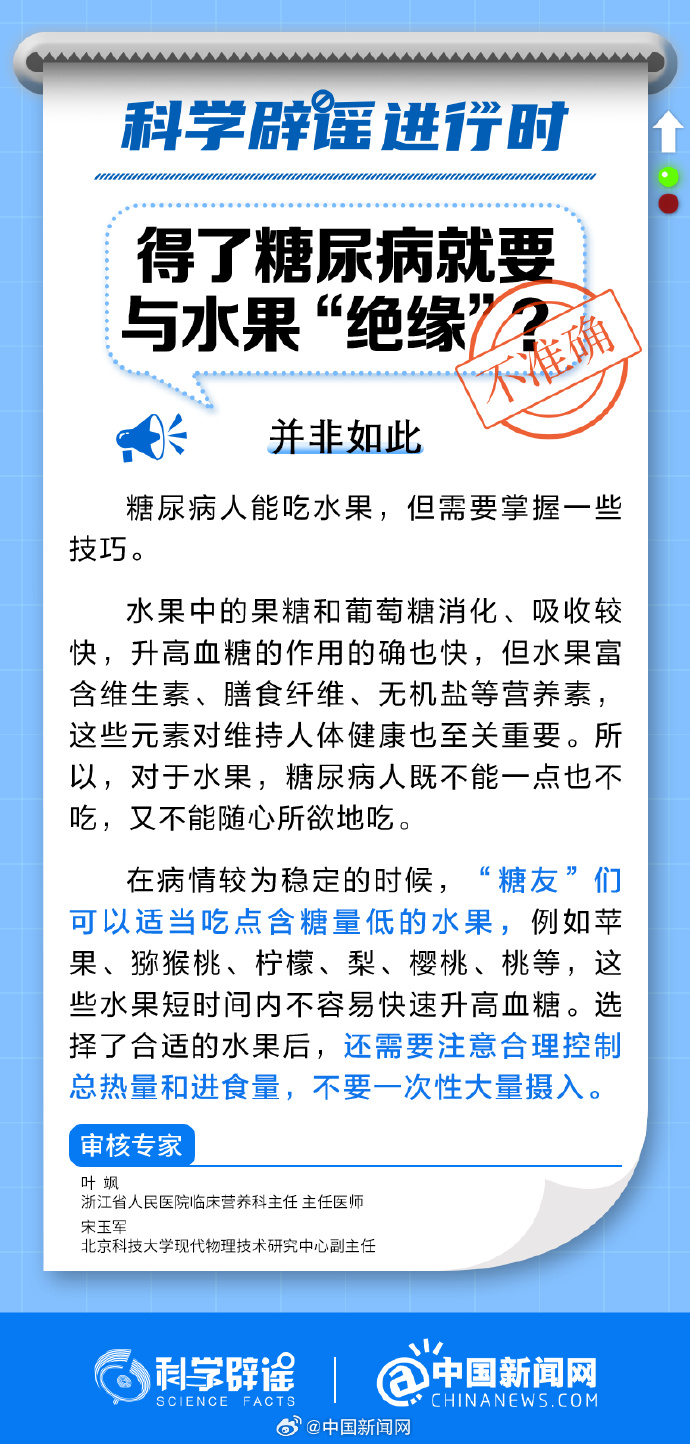 中新網8月21日電 在病情較為穩(wěn)定的時候,“糖友”們可以適當吃點含糖量低的水果,例如蘋果、獼猴桃、檸檬、梨、櫻桃、桃等,這些水果短時間內不容易快速升高血糖。選擇了合適的水果后,還需要注意合理控制總熱量和進食量,不要一次性大量攝入。(來源:@科學辟謠 @中國新聞網 )