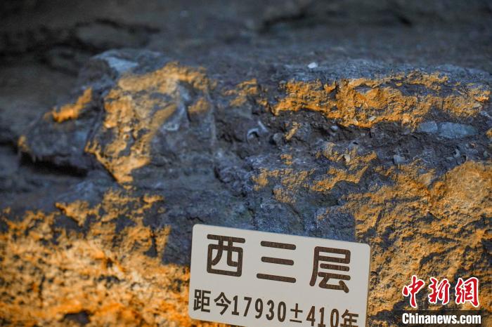 圖為位于白蓮洞考古現(xiàn)場(chǎng)的西三層,部分螺螄殼化石仍清晰可見。韋國(guó)政 攝