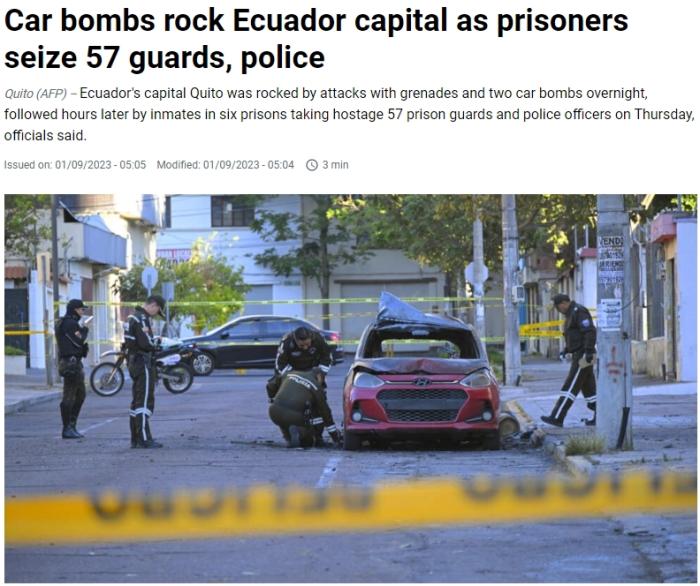 此外,當(dāng)?shù)貢r(shí)間8月30日晚至31日清晨,首都基多夜里發(fā)生兩起汽車炸彈攻擊事件,所幸未造成任何傷亡。