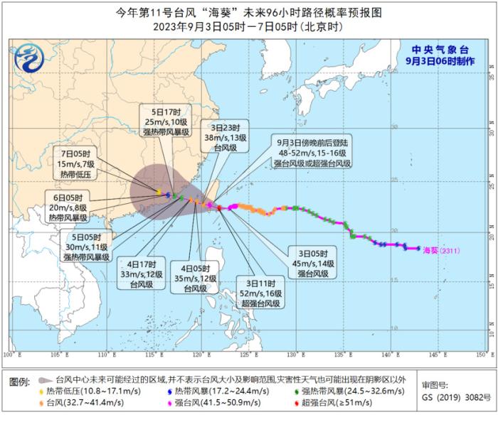 今年第11號臺風(fēng)“海葵”未來96小時路徑概率預(yù)報圖