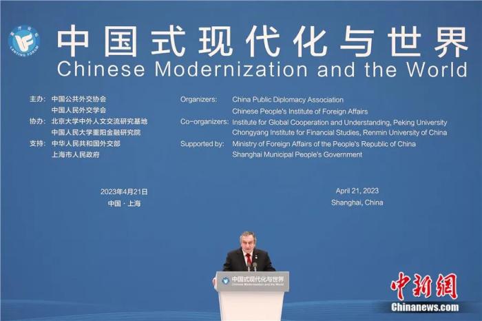 2023年4月21日,“中國式現(xiàn)代化與世界”藍(lán)廳論壇在上海“世界會客廳”舉辦,沙拉夫出席論壇開幕式并致辭。殷立勤 攝
