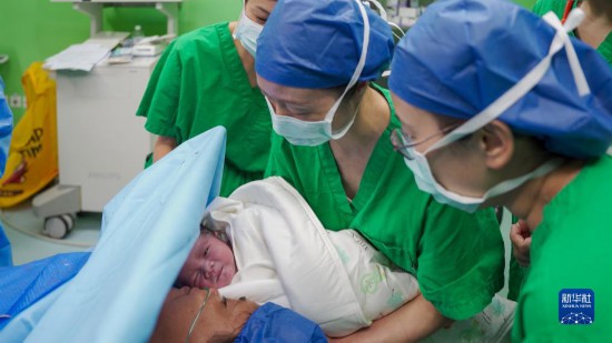 中國海軍“和平方舟”號(hào)醫(yī)院船執(zhí)行“和諧使命-2023”任務(wù)中的第3名“和平寶寶”在東帝汶誕生,新生兒與母親第一次見面(9月5日攝)。新華社發(fā)(李珂嘉賀 攝)