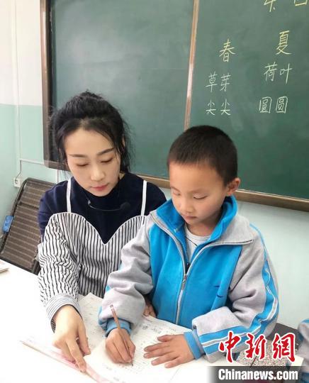 魯珊為學(xué)生輔導(dǎo)功課。(資料圖)武萬宏 攝