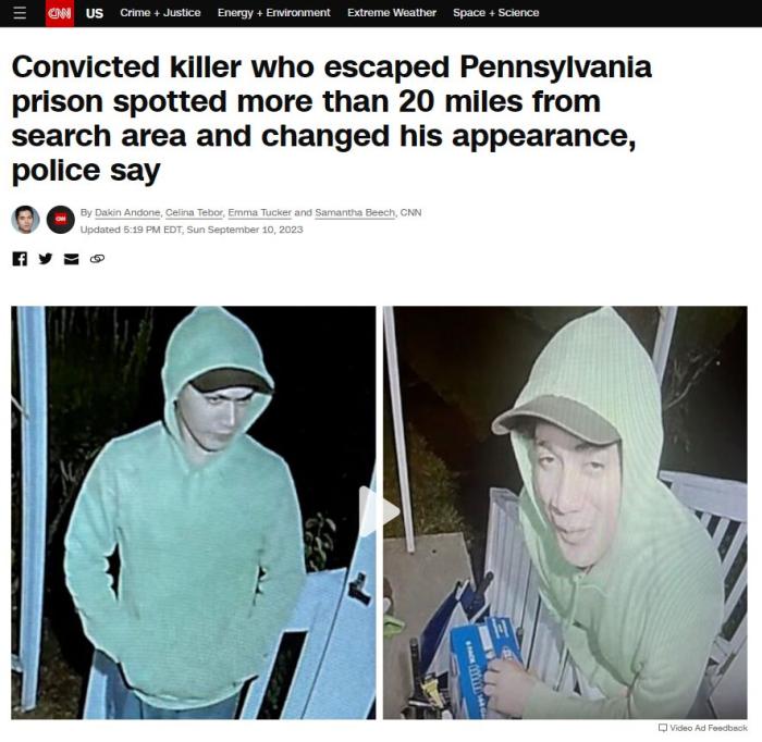 據(jù)報道,當(dāng)?shù)貢r間8月31日上午8時45分左右,卡瓦爾坎特從賓夕法尼亞州切斯特縣監(jiān)獄越獄,該地距離費城約有1小時車程。自其越獄后,已多次被監(jiān)控拍到,也有目擊者見到過他。