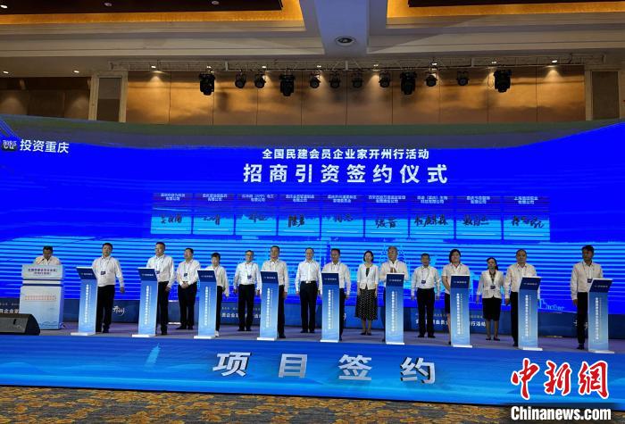圖為全國民建會員企業(yè)家開州行活動招商引資簽約現(xiàn)場?!≈行戮W(wǎng)記者張燕 攝