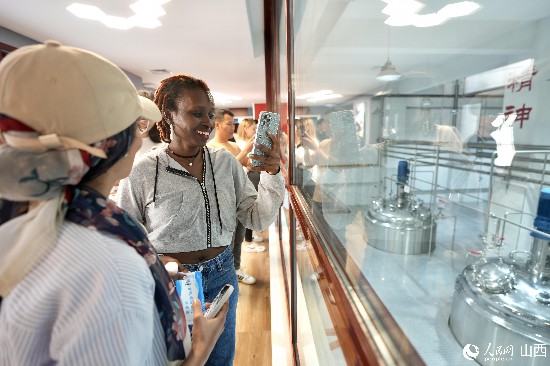 圖為選手一起參觀釀酒廠。人民網(wǎng) 盧鵬宇攝