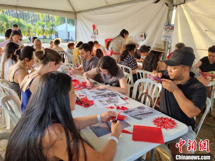 當(dāng)?shù)貢r間9月16日,坎皮納斯市民在當(dāng)?shù)仄咸蜒拦珗@體驗(yàn)中國剪紙、書法、制作燈籠等文化活動??财ぜ{斯大學(xué)孔院供圖