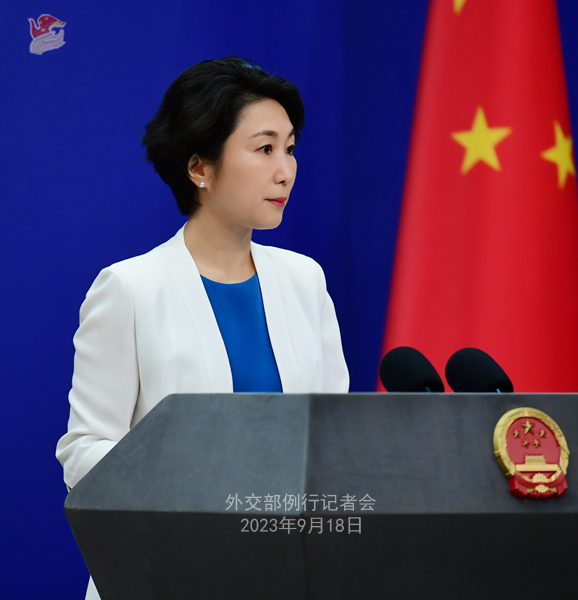 中新網(wǎng)北京9月18日電 (謝雁冰)中國外交部發(fā)言人毛寧9月18日主持例行記者會。