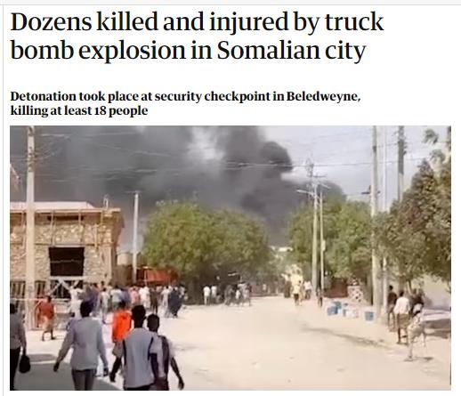 中新網(wǎng)9月24日電 據(jù)英國《衛(wèi)報》報道,索馬里當(dāng)局表示,當(dāng)?shù)貢r間23日,位于索馬里中部城鎮(zhèn)貝萊德文的一個安全檢查站發(fā)生爆炸,造成至少18人身亡、40人受傷。