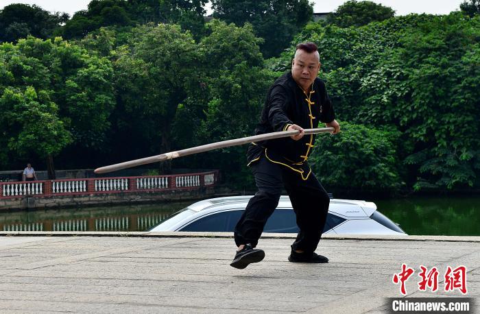 9月20日,福建省漳州市龍文區(qū)檀林耀德堂武術館學員陳開木表演宋江長槌棍術?!≈行律缬浾?張斌 攝