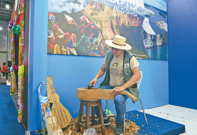 來自巴西里約州帕拉蒂市的多種口味甘蔗酒,現(xiàn)場制作的馬托格羅索州特色中提琴(見圖,本報記者時元皓攝),帕拉伊巴州的舞者身著傳統(tǒng)服飾翩翩起舞……近日,在里約會展中心舉行的第五十屆巴西旅行社協(xié)會博覽會上,來自巴西多個州、市的文旅部門和旅行社展示了豐富的特色商品和地方民俗文化,吸引大批參觀者駐足體驗。