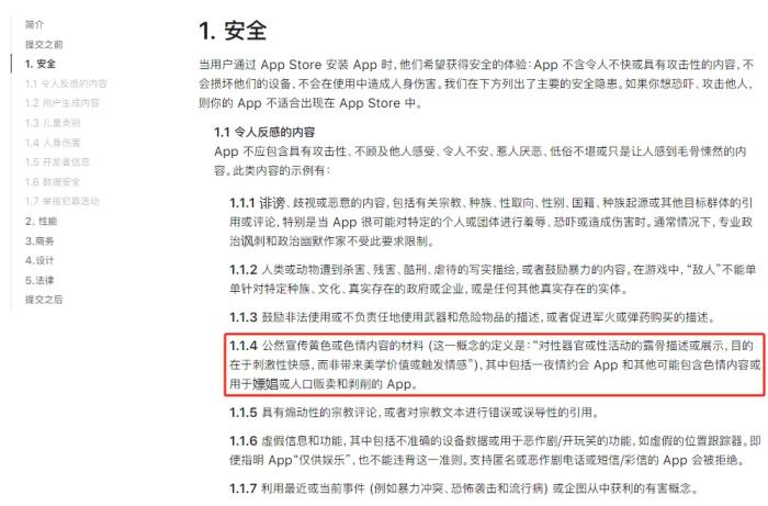 App Store審核指南。截圖自蘋果官網(wǎng)