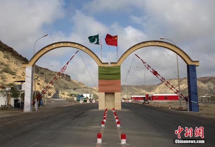 資料圖:瓜達爾港出入口的拱門。瓜達爾港是阿拉伯海沿岸的一座天然不凍良港,也是中巴經(jīng)濟走廊的南端起點。中新社記者 劉關關 攝