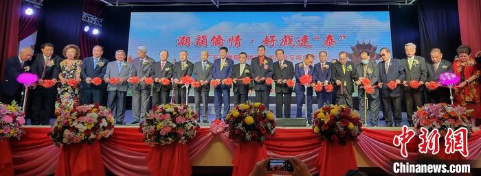 為隆重慶祝泰中建交48周年,泰國文化部、泰國潮劇公會聯(lián)合舉辦"鄉(xiāng)音連僑心"潮劇晚會,13日晚潮劇會開幕和首演,圖為與會嘉賓為晚會開幕剪彩。鄭友宜 攝