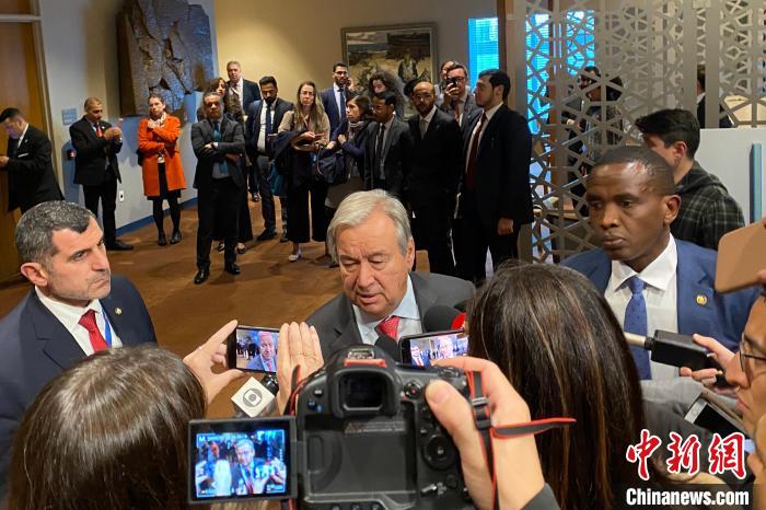 當?shù)貢r間10月13日,聯(lián)合國秘書長古特雷斯在安理會就中東局勢進行緊急磋商后,在紐約聯(lián)合國總部回答記者提問。 中新社記者 王帆 攝