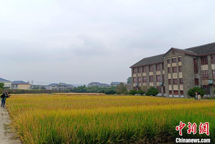 “1964年,當(dāng)時還是青年教師的袁隆平,就是在這塊試驗田發(fā)現(xiàn)了水稻‘天然雄性不育株’,從此開啟了雜交水稻研究試驗。”順著安江農(nóng)校紀(jì)念園管理中心主任謝軍手指的方向望去,一片規(guī)劃整齊的試驗田被分成若干塊,金黃的稻穗隨風(fēng)搖曳。