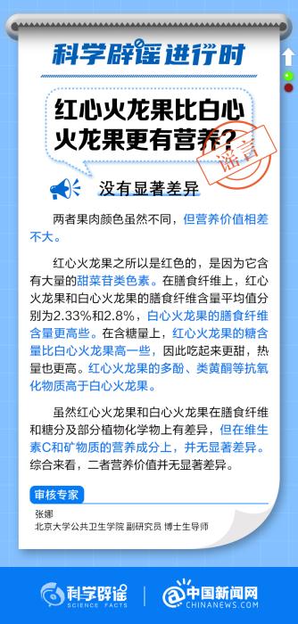 中新網10月16日電 在膳食纖維上,白心火龍果的膳食纖維含量更高些;在含糖量上,紅心火龍果的糖含量比白心火龍果高一些,熱量也更高;紅心火龍果的多酚、類黃酮等抗氧化物質高于白心火龍果。二者在維生素C和礦物質的營養(yǎng)成分上,并無顯著差異。綜合來看,二者營養(yǎng)價值相差不大。(來源:@科學辟謠 @中國新聞網 )