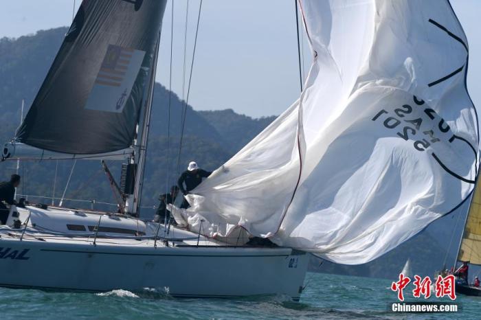 資料圖:2020年1月7日,“一帶一路”國(guó)際帆船賽馬來(lái)西亞站在馬來(lái)西亞蘭卡威附近海域開賽。圖為選手在比賽中。中新社記者 俞靖 攝