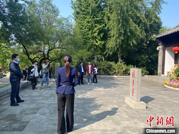圖為兩岸記者參觀王羲之故居。山東省委臺港澳辦供圖