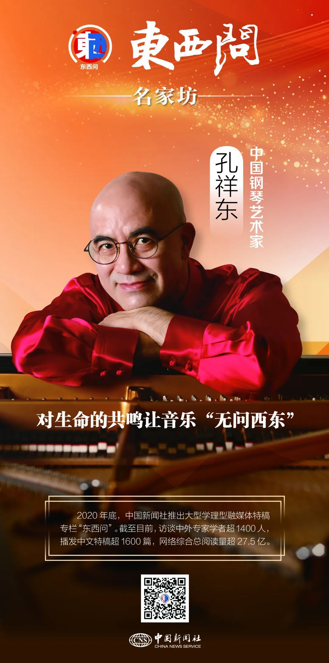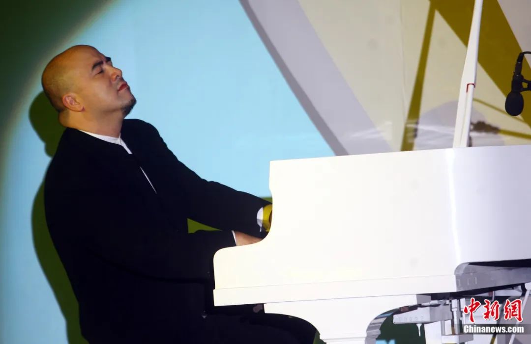 在中新社“東西問”專訪前,坐在鋼琴邊的孔祥東便來了靈感,手落樂起,黑白躍動間,即興之作鏗錚流淌而成。