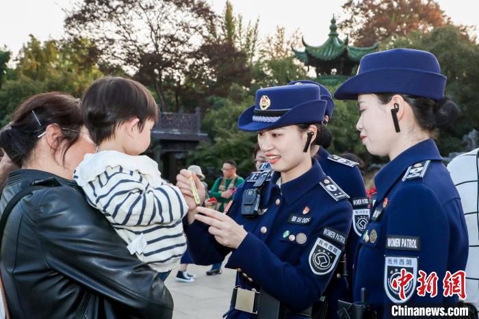 西湖女子巡邏隊(duì)為瘦西湖的游客小朋友提供服務(wù)。主辦方供圖
