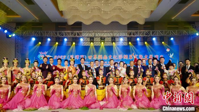 11月3日,2023世界閩南文化節(jié)在菲律賓馬尼拉舉行開幕式。圖為與會(huì)嘉賓與演員合影。中國駐菲使館供圖
