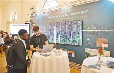 圖為奧地利環(huán)保網(wǎng)絡(luò)公司的展臺(tái)介紹了其在非洲實(shí)施的提高碳市場(chǎng)透明度、提升高質(zhì)量碳信用額的解決方案。