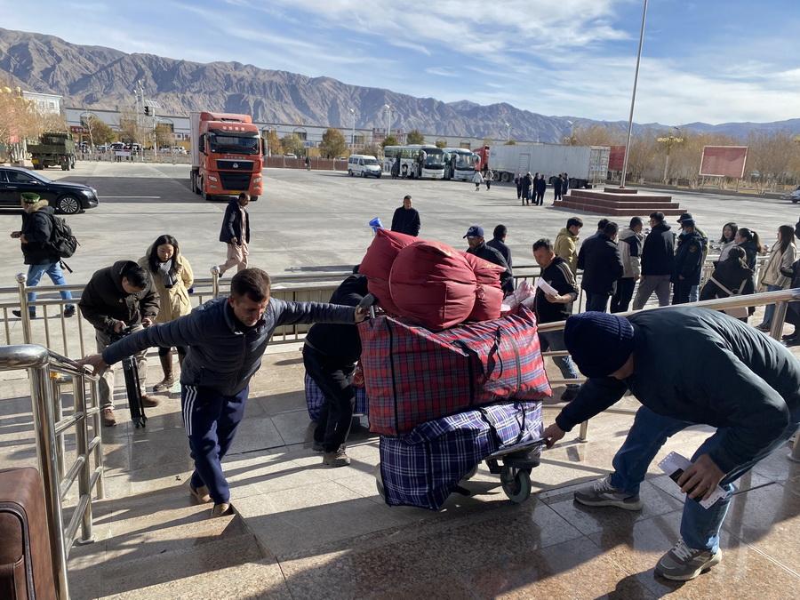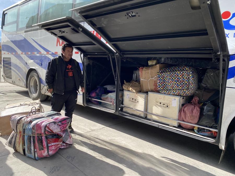 11月6日,國(guó)際道路旅客(旅游)班車裝滿了旅客的行李。(中國(guó)網(wǎng)記者 王冉 攝)