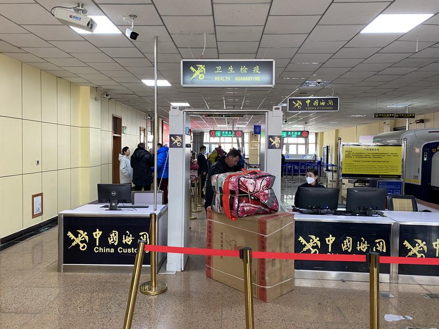 11月6日,紅其拉甫邊檢站民警為出境旅客辦理邊檢手續(xù)。(中國(guó)網(wǎng)記者 王冉 攝)
