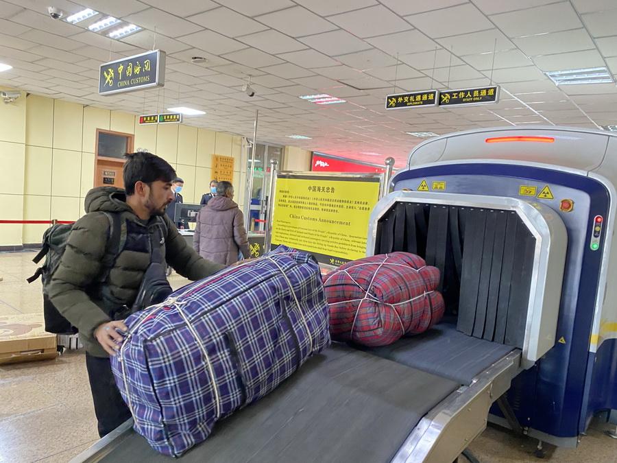 11月6日,一位巴基斯坦商人正在通過海關(guān)。(中國(guó)網(wǎng)記者 王冉 攝)