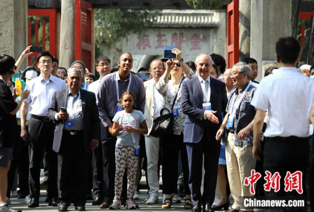 2023年6月27日,正在山東曲阜參加世界互聯(lián)網(wǎng)大會(huì)數(shù)字文明尼山對(duì)話的中外嘉賓,來(lái)到孔廟、孔府沉浸式體驗(yàn)中華傳統(tǒng)文化。沙見龍 攝