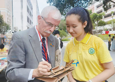 飛虎隊老兵后人蘭迪·斯科特為廣西柳州市壺西實驗中學學生留言。