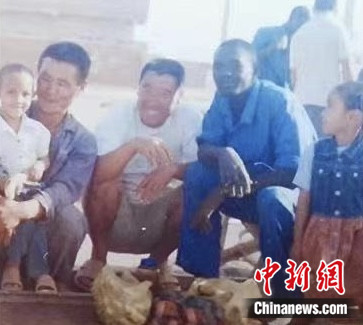 2004年在蘇丹,顏青和弟弟遇到的兩位和藹可親的中國叔叔(左二、左三)。 受訪者 供圖