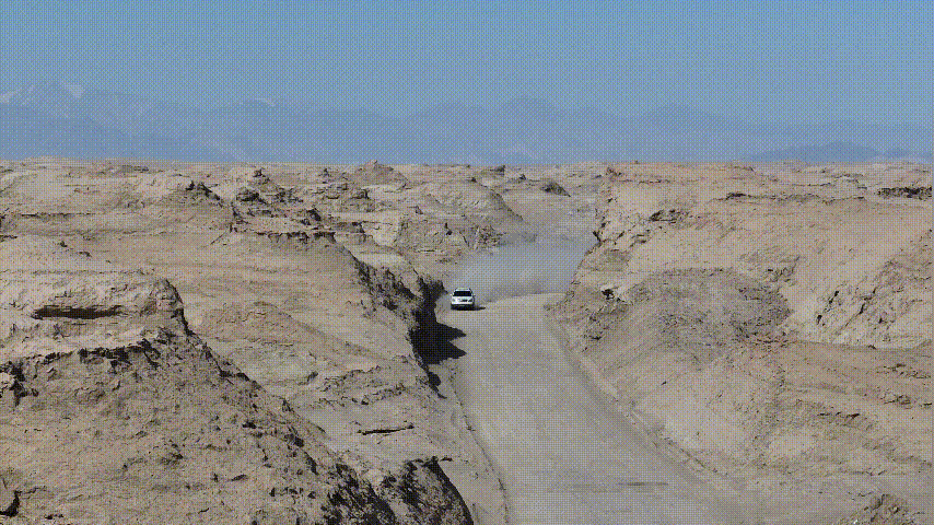 “登陸火星”。截自《茫崖生態(tài)旅游》紀(jì)錄片 茫崖融媒體中心 供
