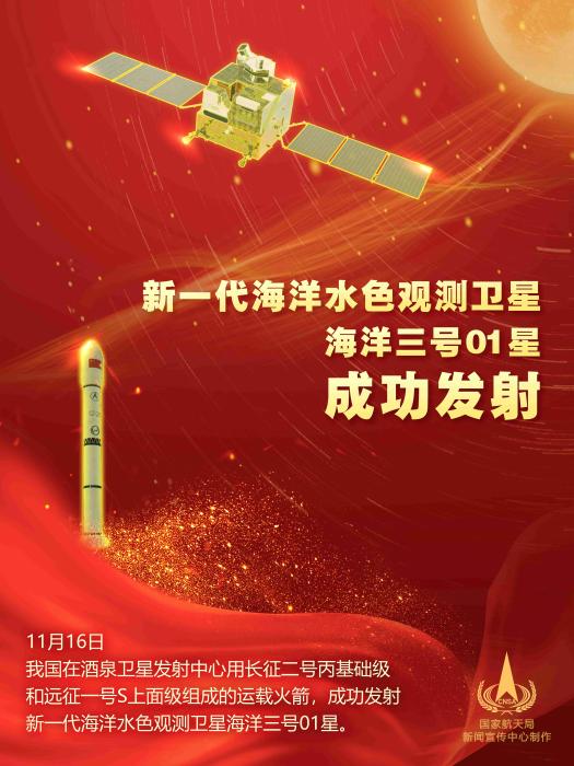 中新網(wǎng)酒泉11月16日電 (馬帥莎 張未)11月16日11時(shí)55分,中國(guó)在酒泉衛(wèi)星發(fā)射中心用長(zhǎng)征二號(hào)丙基礎(chǔ)級(jí)和遠(yuǎn)征一號(hào)S上面級(jí)組成的運(yùn)載火箭,成功發(fā)射新一代海洋水色觀測(cè)衛(wèi)星海洋三號(hào)01星。該衛(wèi)星指標(biāo)達(dá)到國(guó)際水色遙感衛(wèi)星先進(jìn)水平,可滿(mǎn)足中國(guó)海洋環(huán)境監(jiān)測(cè)的主體業(yè)務(wù)需求,并能夠服務(wù)于生態(tài)文明建設(shè)、智慧海洋工程建設(shè)、“一帶一路”倡議等國(guó)家重大戰(zhàn)略需求。