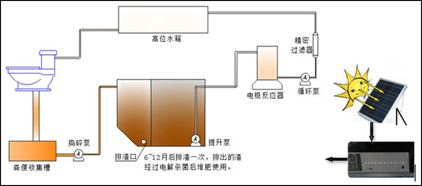 世界廁所日前夕,中新網(wǎng)記者來到位于北京市房山區(qū)黃山店村的一處“新世代廁所”示范項目點。農(nóng)業(yè)農(nóng)村部規(guī)劃設(shè)計研究院高級工程師王惠惠介紹,這是國內(nèi)第一個示范項目點,于2022年6月開始運行。該項目點采用了美國加州理工學(xué)院Hoffmann教授團(tuán)隊研發(fā)的電化學(xué)高級氧化技術(shù)對糞污進(jìn)行處理,由中國企業(yè)進(jìn)行一定本土化改進(jìn),并由規(guī)劃院提供太陽能供暖技術(shù)支持。