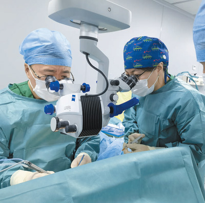 北大人民醫(yī)院主任醫(yī)師侯憲如(左)與該院眼科主治醫(yī)師孟慶娛共同為烏茲別克斯坦患者進(jìn)行白內(nèi)障手術(shù)。
