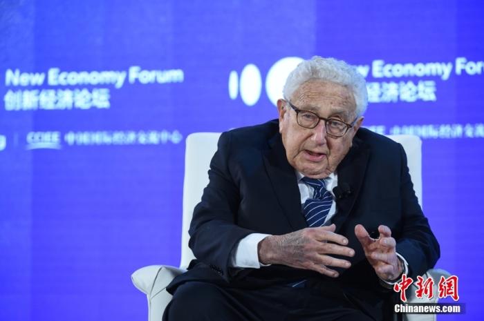資料圖為2019年11月21日,2019年創(chuàng)新經(jīng)濟(jì)論壇在北京舉行,在“特別會(huì)議—對(duì)話:基辛格博士”環(huán)節(jié),美國(guó)前國(guó)務(wù)卿、創(chuàng)新經(jīng)濟(jì)論壇名譽(yù)主席亨利·基辛格(Henry Kissinger)出席并發(fā)言。