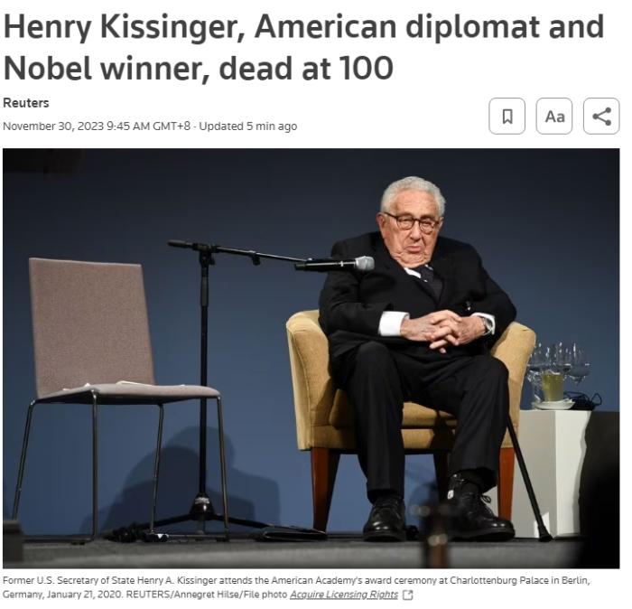 - 美國(guó)前國(guó)務(wù)卿亨利·基辛格去世