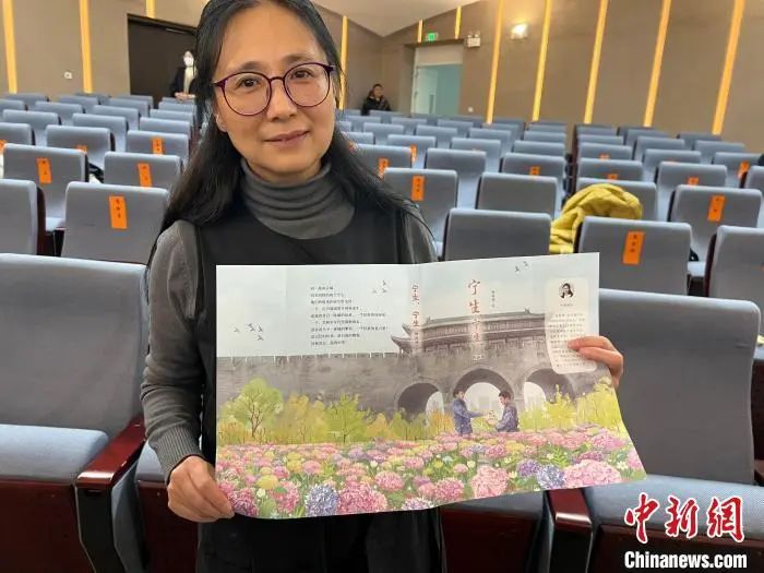 南京市長(zhǎng)江路小學(xué)英語(yǔ)教師楊筱艷展示她創(chuàng)作的《寧生,寧生》書籍封面。朱曉穎 攝