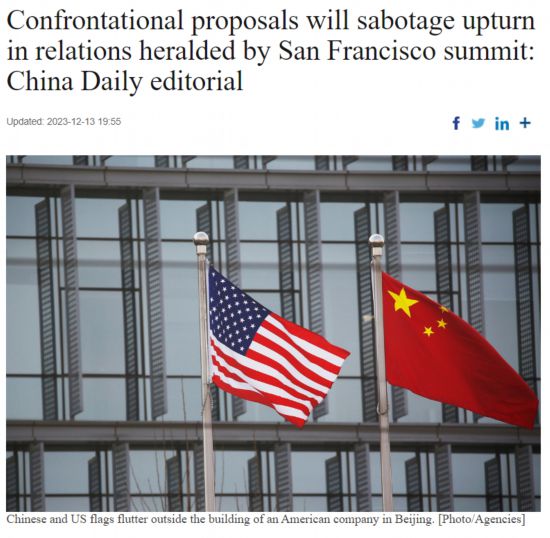 11月,舊金山會(huì)晤達(dá)成共識(shí),中美雙方應(yīng)加強(qiáng)溝通,妥善管控分歧,推進(jìn)對(duì)話合作。然而,委員會(huì)的提議卻與舊金山會(huì)晤共識(shí)背道而馳,充滿對(duì)抗性。提議或?qū)?dǎo)致美國(guó)國(guó)會(huì)于明年出現(xiàn)更多反華立法,這無(wú)疑將給雙方關(guān)系的改善蒙上陰影。