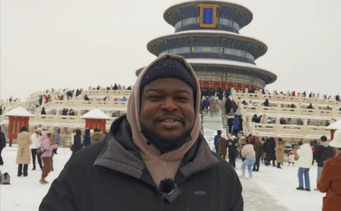 當(dāng)日正值大雪,銀裝素裹的天壇宛如一幅畫(huà)卷,古老的祈年殿在白雪的映襯下更顯莊重肅穆。留學(xué)生們沉浸在大雪紛飛的美景中,紛紛拿出手機(jī)互相打卡拍照,記錄下這美好瞬間。哈薩克斯坦籍留學(xué)生阿迪力(ARYSTAN ADIL)向記者介紹,這是他第一次來(lái)到天壇,“天壇是古代皇帝祭天祈雨的地方,我對(duì)中國(guó)的歷史很感興趣。”阿迪力說(shuō)。