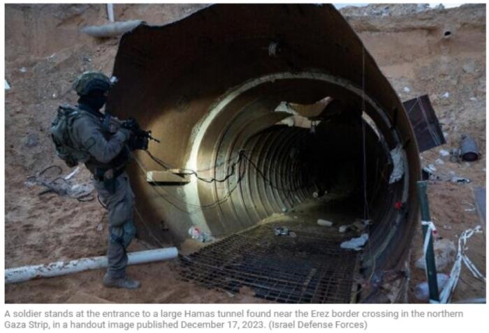 以色列國防軍表示,這條地道長約4公里,部分地區(qū)深約50米,寬度足以讓車輛通過,其中一個(gè)豎井距埃雷茲過境點(diǎn)僅400米。