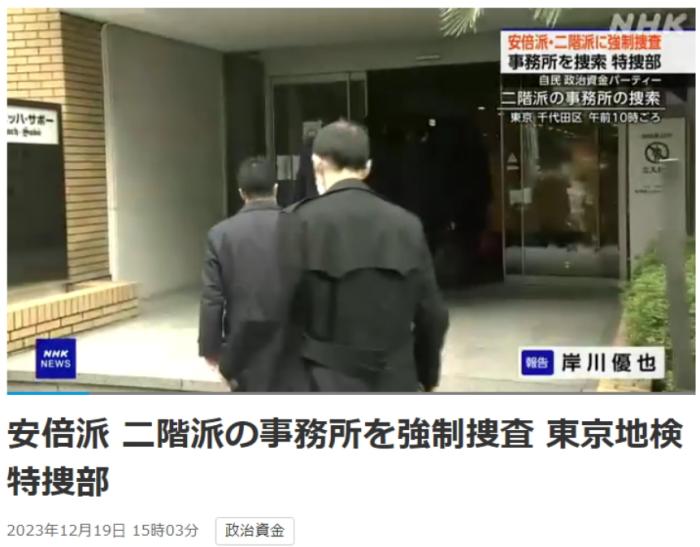 中新網(wǎng)12月19日電 據(jù)日本放送協(xié)會(NHK)報道,19日,日本東京地檢特搜部以違反政治資金相關(guān)法規(guī)為由,對自民黨安倍派(清和政策研究會)和二階派(志帥會)的辦公場所進(jìn)行強制搜查。