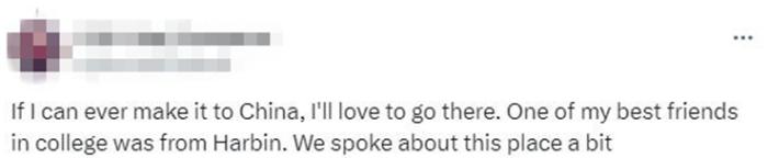有網(wǎng)友表示,“如果我能去中國,我很想去那里。我大學時最好的一個朋友就是來自哈爾濱。我們聊過這個地方。”